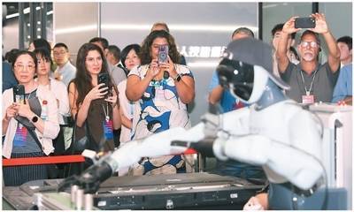 图为近日,在上海浦东新区张江科学城内的“模力社区”,插足第二届全国中国粹大会“中国式现代化”主题参访行径的嘉宾参不雅东说念主形机器东说念主。
