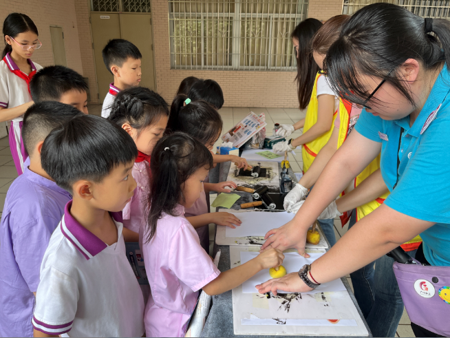 拓印身手是我国非物资文化遗产的进犯构成部分,蕴含着特有的文化内涵和精神价值。为了让社区儿童感受非遗传统文化的魔力,志愿者先向儿童先容拓印的制作工艺以及经由,并现场示范印刷,让儿童直不雅地了解制作过程。随后志愿者的引颈下,儿童们纷纷围在拓印摊位前躬行体验。刷墨、铺纸张、锤拓……神不知,鬼不觉中,一幅幅细致的拓印作品就降生了。
