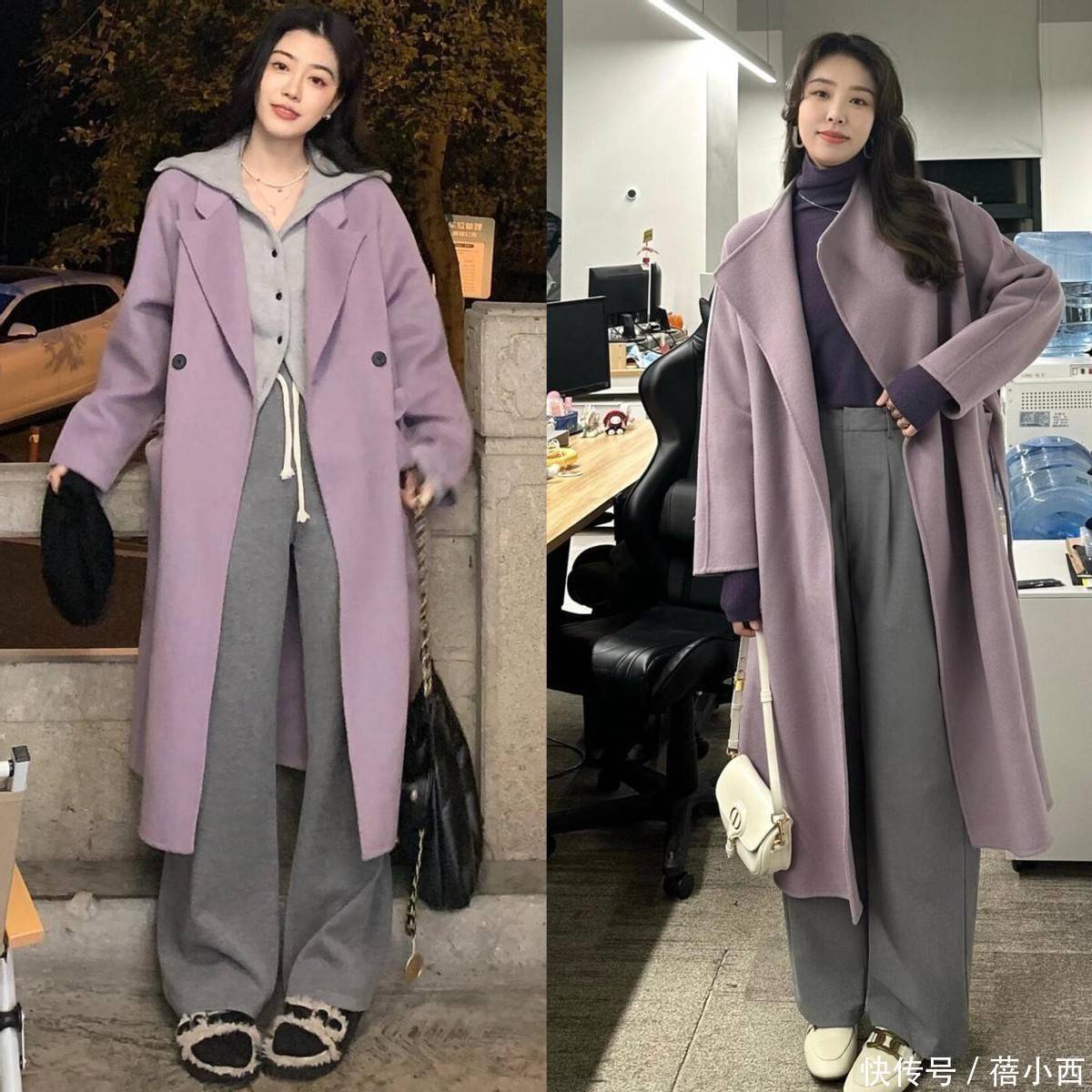 临了是自带和缓氛围感的紫色大衣,自带闲暇讲求的质感,穿起来高档又显气质,还能暗暗普及讲求感,减龄又不作念作。