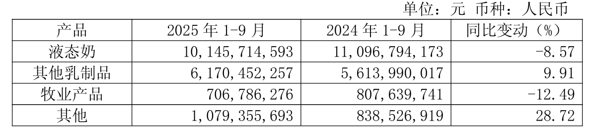 2025年前三季度,光明乳业的中枢居品液态奶收入下滑,公司贸易收入为182.31亿元,同比下落0.99%;归母净利润为8721.43万元,同比下落25.05%。